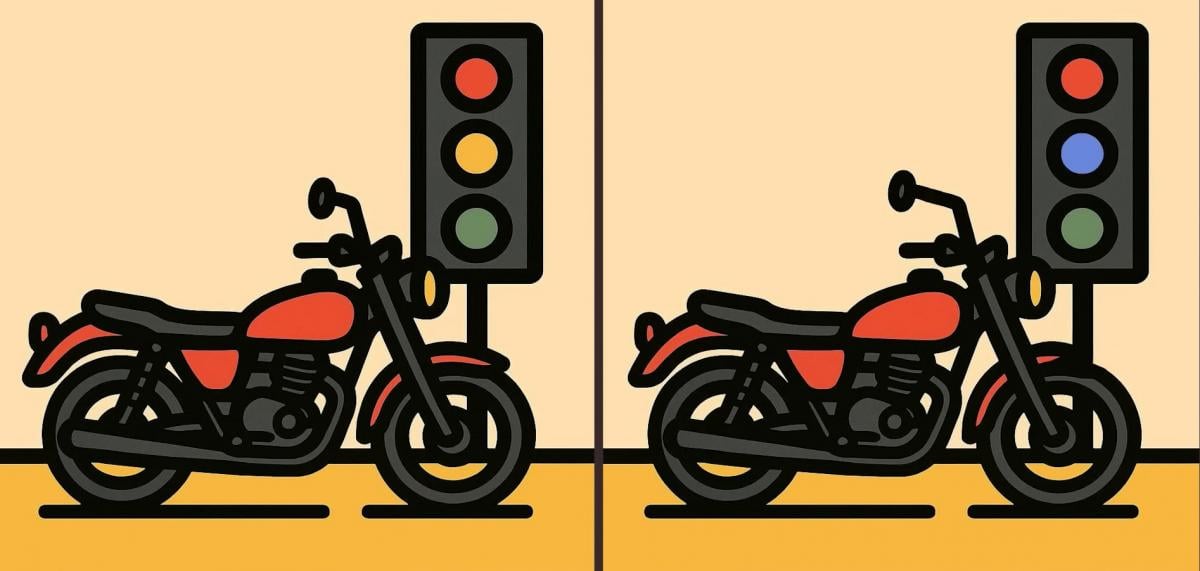 Allora, siete pronti per la prossima sfida? Osservate attentamente due immagini di una moto vicino a un semaforo. A prima vista possono sembrare ugi, ma ci sono 3 piccole differenze. Pensate di riuscire a trovarle tutte in 19 secondi? Provate e mettete alla prova la vostra acutezza visiva!